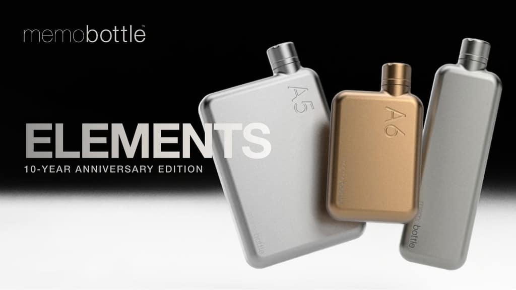 Celebrating 10 years of Memobottle. A limited-edition collection of flat water bottles designed to fit in your bag and life.