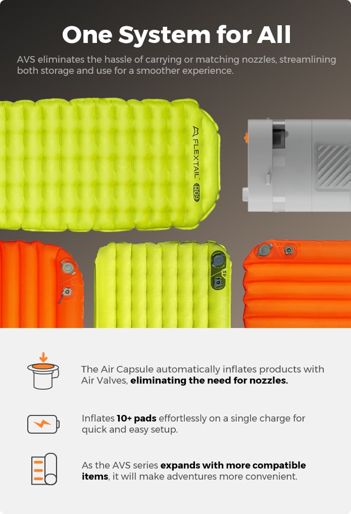 Today, we’re excited to unveil AVS – the built-in automatic inflation and deflation system. By solving size and performance issues, setting up your outdoor sleep system has never been easier.