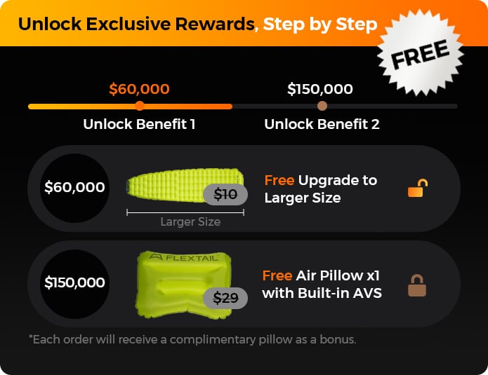 To celebrate the Tiny Sleeping Pad series launch on INDIEGOGO, we’re offering 3 exclusive rewards to all backers. Don’t miss this chance to enjoy next-gen outdoor sleep solutions at an unbeatable price: